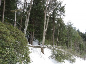 The amount of work needed to clear it was also a consideration. The Western side of the trail is easier and safer and the eastern side is more challenging. So when ski conditions are an issue we usually take the Western half of the trail, that side also has the vista in the top photo. Maintaining the trail is a big challenge.