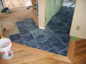 In shopping for the tiles I wanted a mostly dark blue 12×12” tile for less than $3/tile. After searching several stores I found just what I was looking for at Lowe’s.