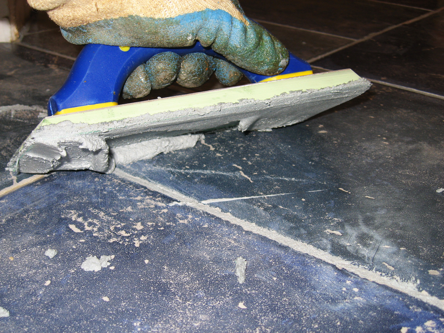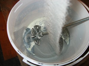 Mixing in the Twilight Blue Sanded Grout.
